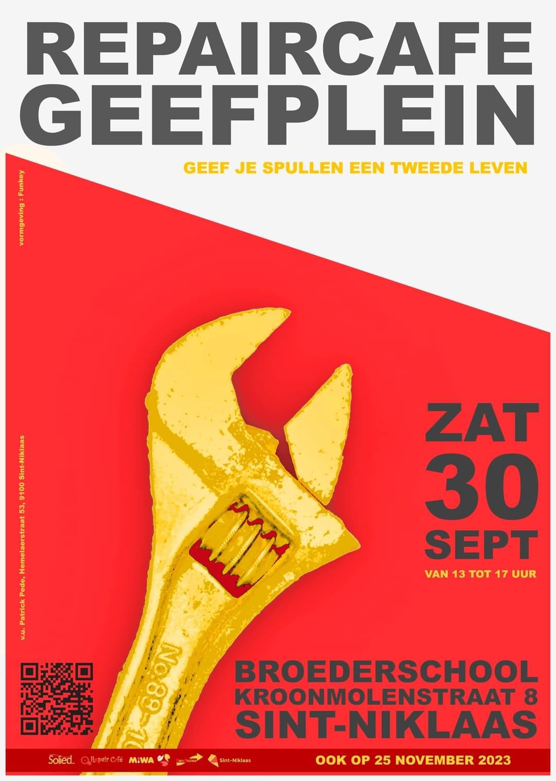 Repair Café: vrijwillige reparateurs helpen bij het herstellen van allerlei voorwerpen zoals kledij, elektrische apparaten, multimedia, meubels en fietsen… Je hoeft je niet op voorhand in te schrijven.